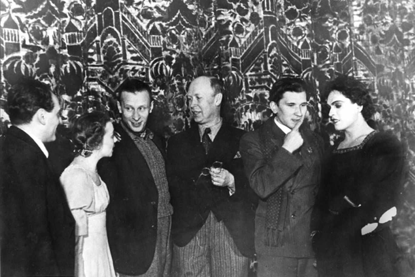 Накануне премьеры: Исай Шерман, Галина Уланова, Петр Вильямс, Сергей Прокофьев, Леонид Лавровский, Константин Сергеев. 10 января 1940 года. Фотография: mariinsky.ru