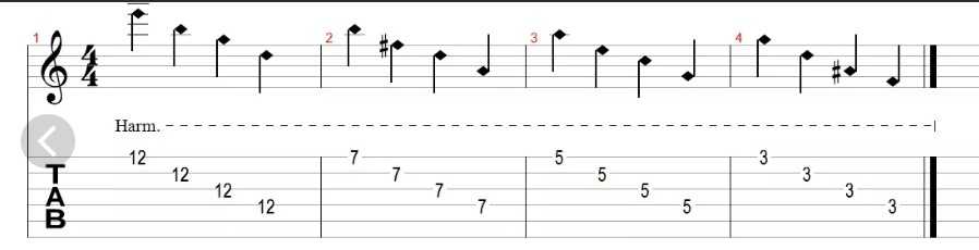 Ниже представлено несколько упражнений, которые помогут вам лучше понять, как играются натуральные обертона, а также добавят в вашу копилку несколько интересных фраз и мелодических рисунков.