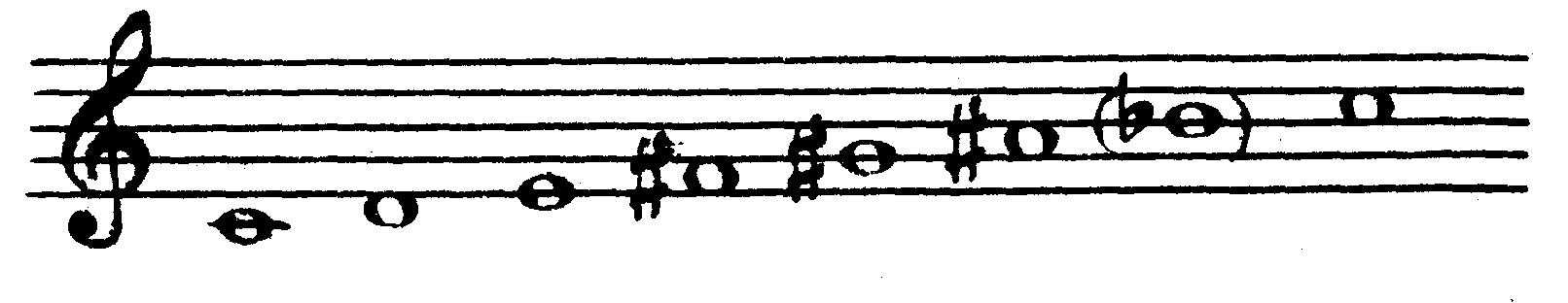 Звукоряд увеличенного лада представляет собой гамму, построенную по целым тонам: