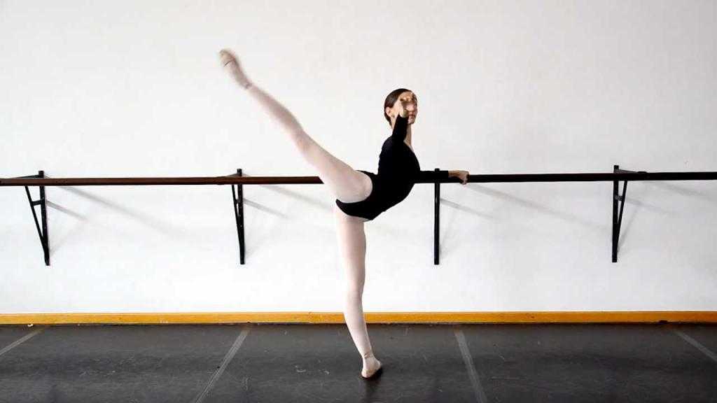 — плавное поднимание работающей ноги, вытянутой в колене, на максимальную высоту (90° и выше) в каком-либо направлении. Элемент adagio