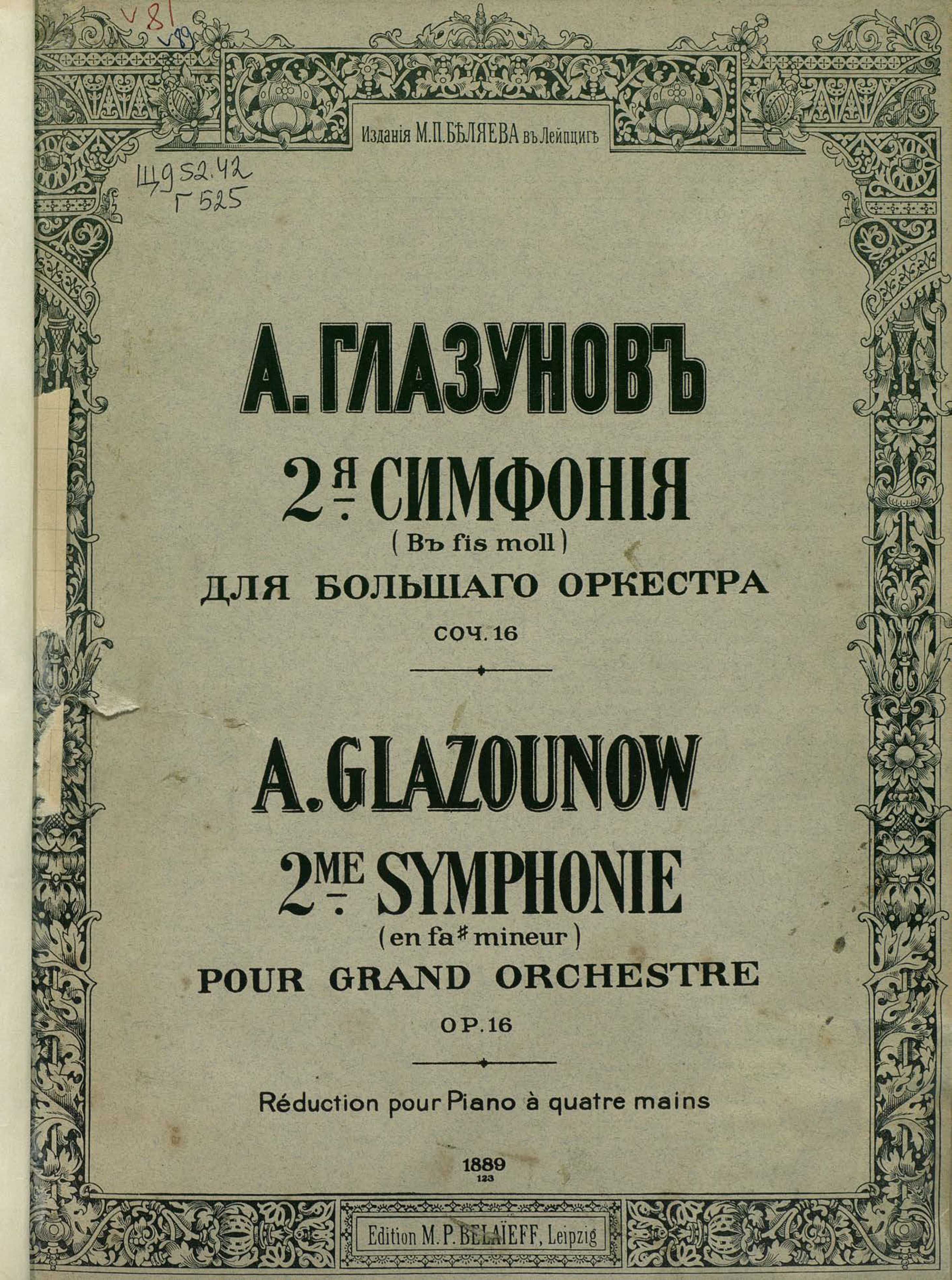 Вторая симфония, высоко ценившаяся в кругу «новой русской школы», была посвящена Листу в знак признательности за внимание и поддержку, оказанную им молодому композитору (по инициативе Листа Первая симфония Глазунова была исполнена весной 1884 года в Веймаре на торжествах по случаю очередного годичного собрания Всеобщего немецкого музыкального объединения). Глазунов широко пользуется в этой симфонии листовским принципом монотематизма, не связывая его, впрочем, с каким-либо программным содержанием
