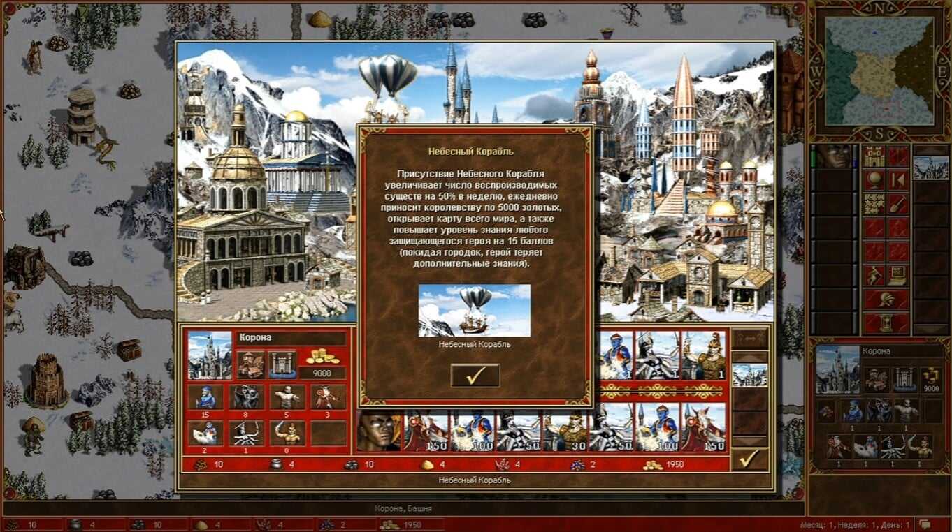 Это мощнейшая боевая машина в игре, но всего с 8 выстрелами. Для ранней игры этого более чем достаточно – редко когда битвы с нейтралами на старте превышают столько ходов. У Джереми она со старта, плюс «Пушка» – его специализация, увеличивает атаку и защиту машины на 5% за каждый уровень героя.