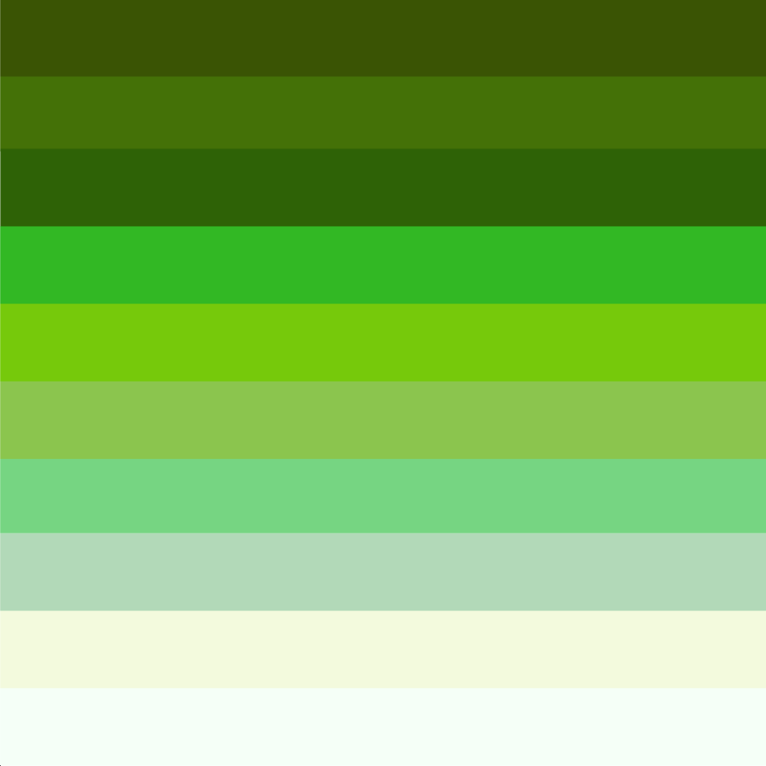 На рисунке внизу расположены самые светлые оттенки зеленого, максимально близкие к белому. У таких оттенков высокая светлота.