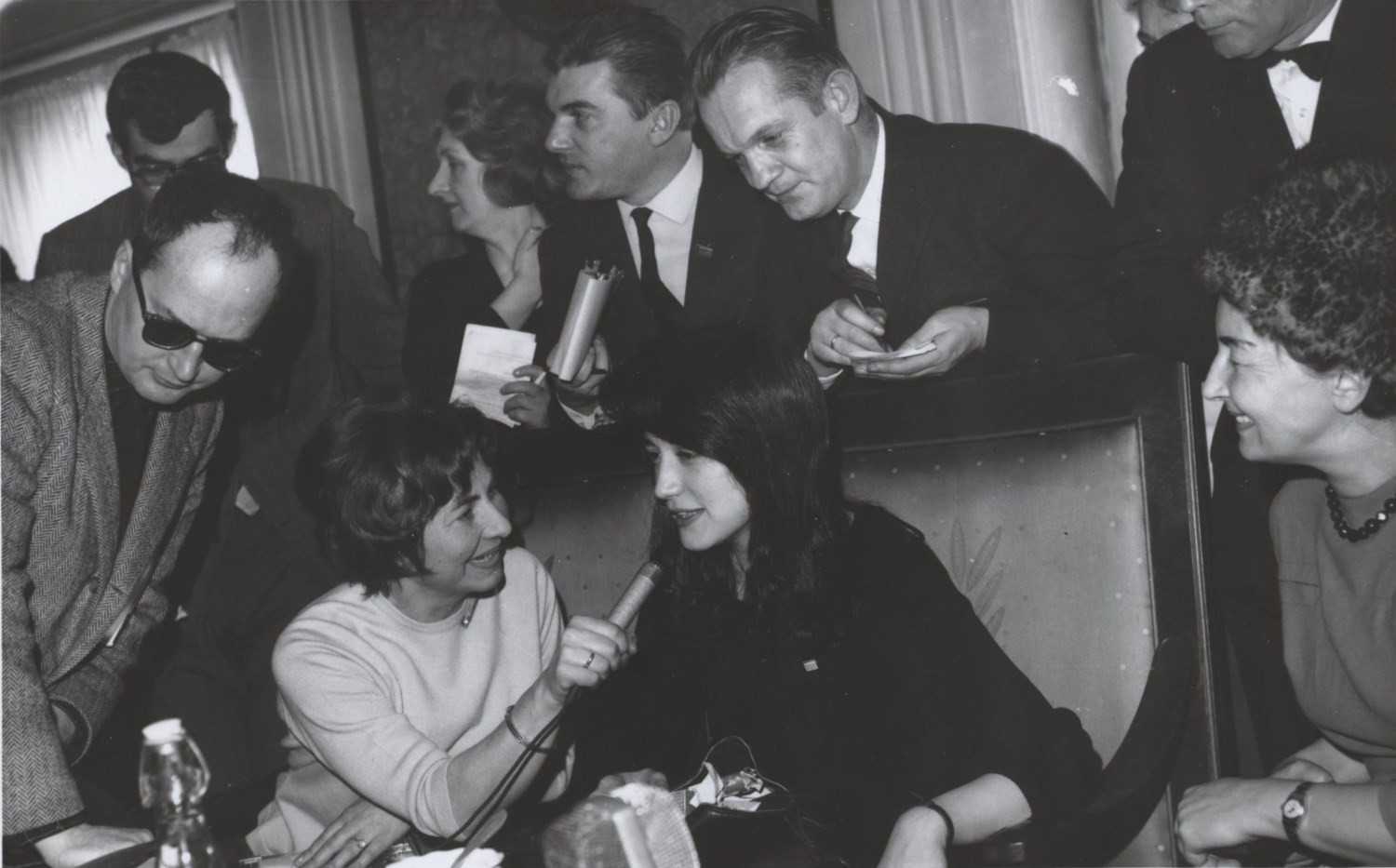 Фото: Марта Аргерих дает интервью после объявления результатов Конкурса, Варшава, 15 марта 1965 года.