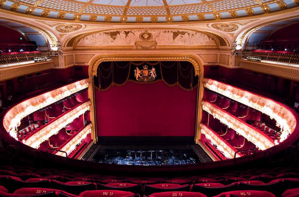 Зрительный зал Британского королевского театра Ковент Гарден имеет четыре яруса, ширина авансцены составляет 12 метров, высота — около 15 метров, а в зале могут разместиться более двух тысяч человек.