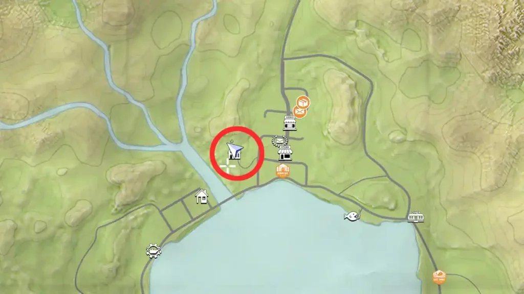 Местоположение церкви в игре Lake