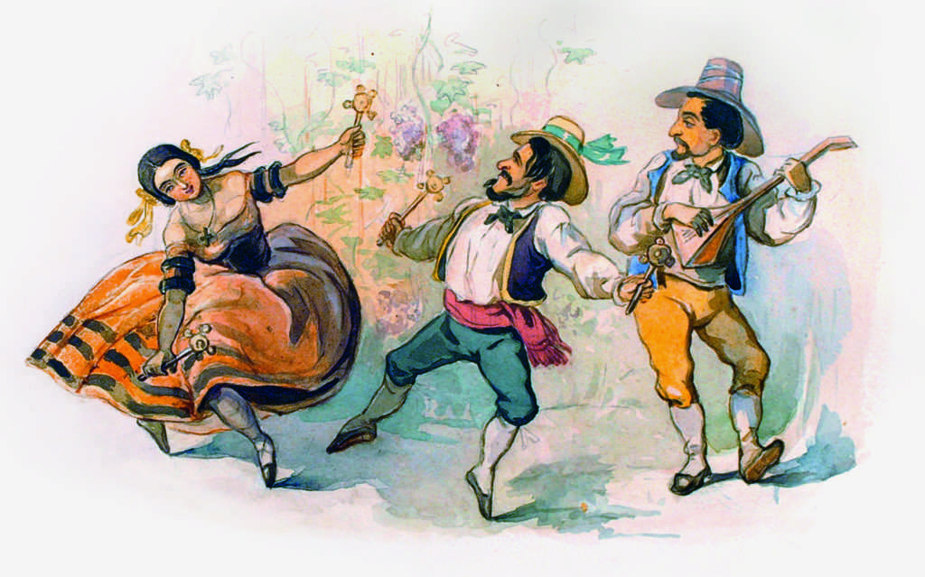 Н.А. Степанов. «Неистовая пляска М.И.». Акварель. РНБ, Санкт-Петербург.