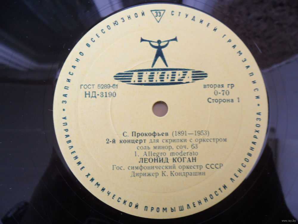 - 1956 — ГСО, дирижёр К. П. Кондрашин, солист Л. Б. Коган, фирма «Мелодия» Д 3190-1
