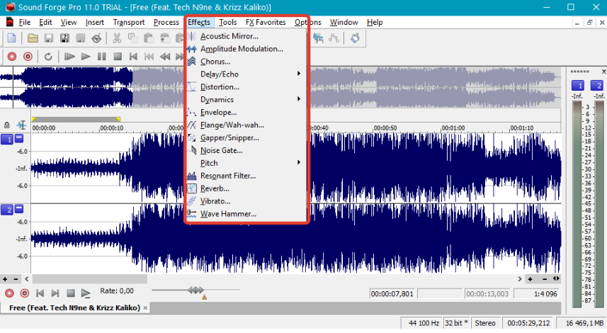 Во-первых, это уже упоминавшийся выше Sound Forge. Он удобен тем, что имеет набор основных функций обработки звука, и можно найти бесплатную русскоязычную версию :