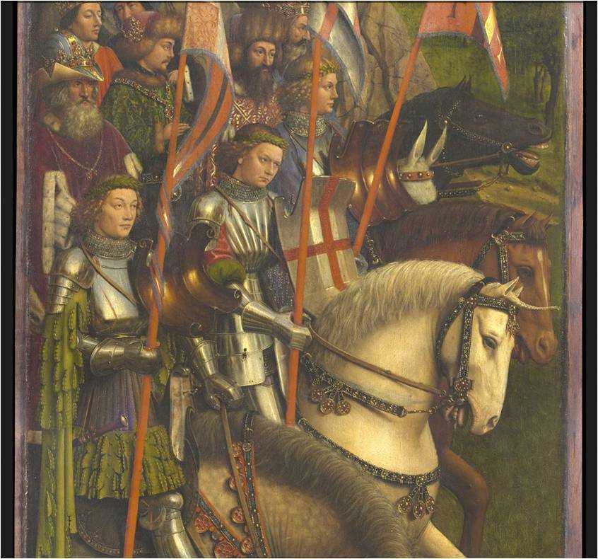Жаждущий земного великолепия может насладиться созерцанием сильных мира сего, сверкающих золотом, блеском парчи и драгоценных камней. Процессия благородных дев изумляет элегантностью движений, изысканностью нарядов, красотой лиц. Кавалькада праведных судей и воинов Христовых поражает благородством осанки, красотой парадных одежд, роскошью конских сбруй и рыцарских доспехов.