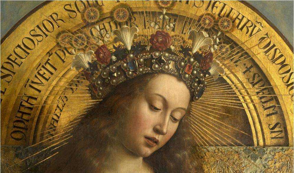 Можно обратить взор на лик Девы Марии, это одно из самых прекрасных Ее изображений в мировом искусстве. Можно помечтать вместе с таинственной Евой, незримо проникнуть в горницу, где происходит безмолвная беседа архангела и Девы Марии. Можно попытаться войти в тайну внутренней драмы Иоанна Крестителя или ностальгическую печаль Адама, созерцать портреты коленопреклоненных Йодокуса Вейдта и Елизаветы Борлют.