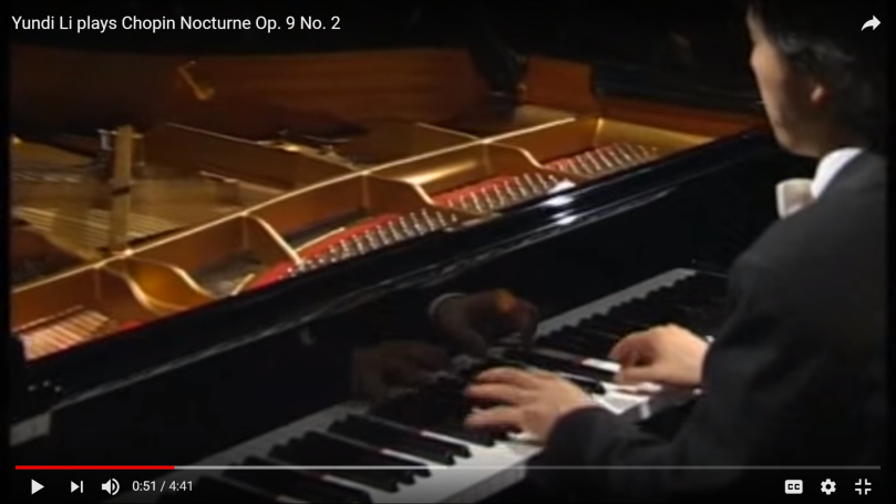 Unfortunately, we can’t do that on the piano, and so the second best thing we can do is delay the note, to create a sense of reaching to the note. This is particularly useful for octaves, or any sort of big leap, because it creates the sense of soaring, the feeling of height and flying towards the note. Listen to Chopin’s Nocturne No 2, Op 9 below, and note the “reaching” for the octave notes.