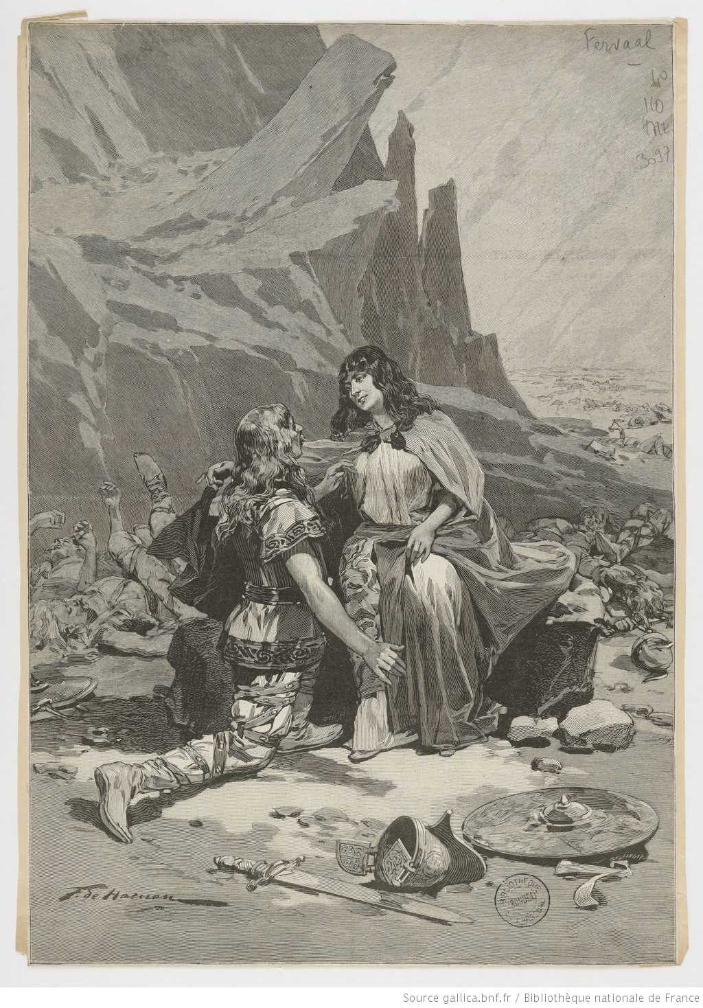 The opera takes place in the Midi and in Cravann, high in the Cévennes mountains, in a legendary time of Saracen invasions. (A strange time, Pierre Lalo observed, when the religion of Druids and that of Mohammed both thrived!)