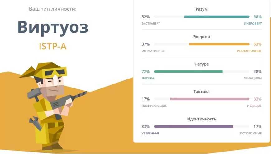 Для них важно принять это решение самостоятельно, в момент полной готовности и уверенности в своей работе. В мире людей с чистой типологией Виртуоза встречается не более 5 % от всего населения земного шара