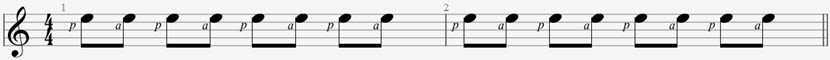 Ставим темп 60. Играем пальцами p-a. На каждый клик метронома по одному звуку в течение 2-3 минут.