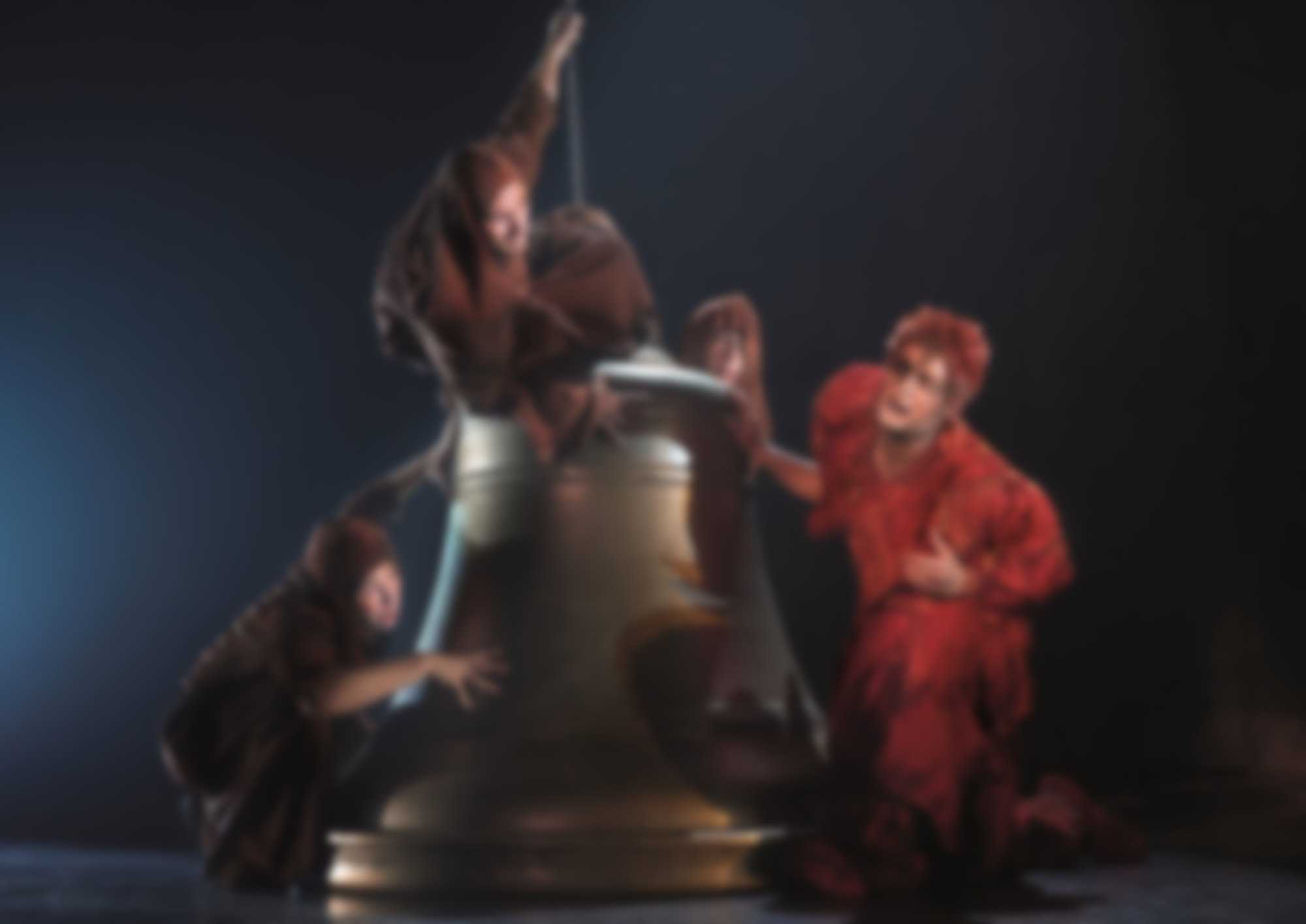 Эсмеральда без памяти влюбляется в самого красивого из них — Феба. Он не против воспользоваться этим, несмотря на то что у него есть невеста — Флер-де-Лис. Фролло же обуреваем ревностью и терзаем сомнениями — ведь он, как священник, не имеет права любить женщину. Квазимодо восхищается юной цыганкой, видя в ней ту недосягаемую неземную красоту, которая является полной его противоположностью.