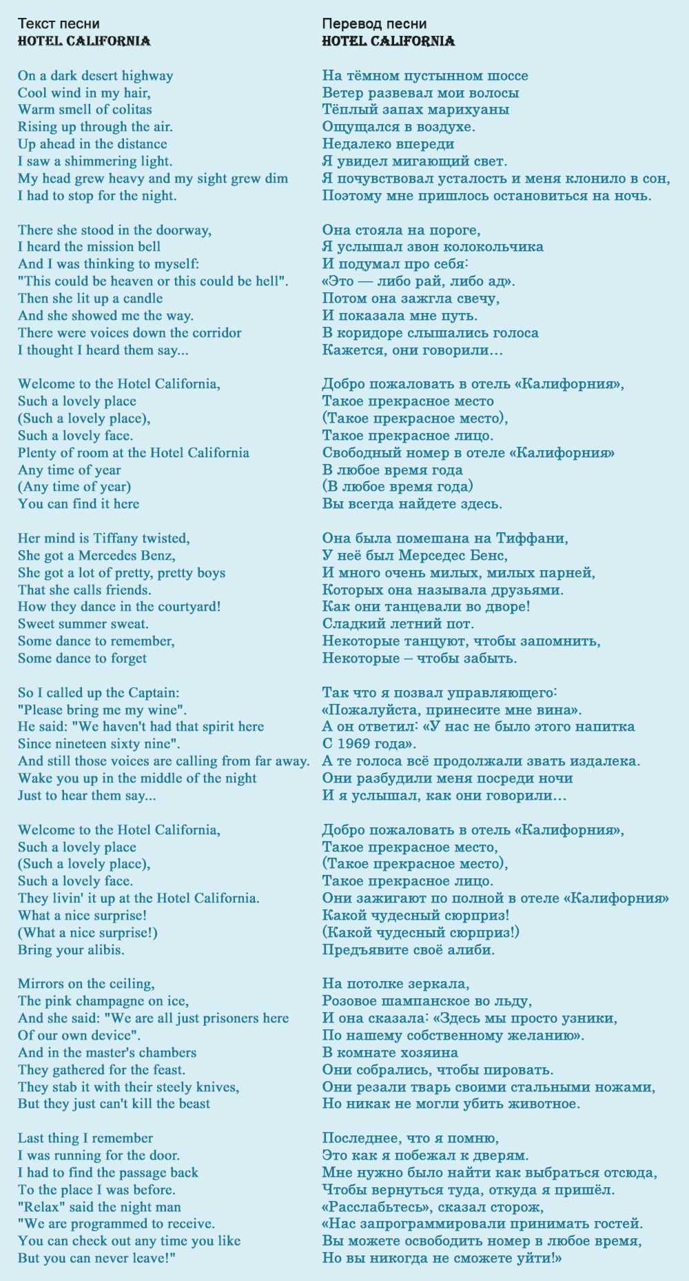 Смысл песни «Отель калифорния» (Hotel California — Eagles)
