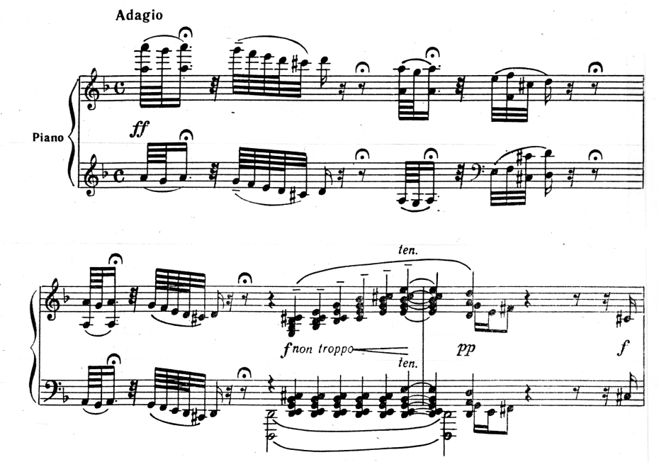 Заключительные 10 тактов Adagio резко отличаются от всего предыдущего. Характер музыки становится здесь величественным и торжественным.