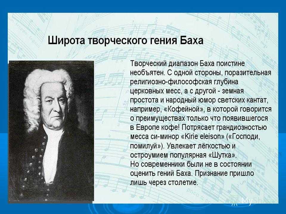 Имя Баха приходит нам в голову одним из первых при перечислении великих композиторов. Действительно, он был выдающимся, свидетельством чего служат более 1000 музыкальных произведений, оставшихся после его жизни.