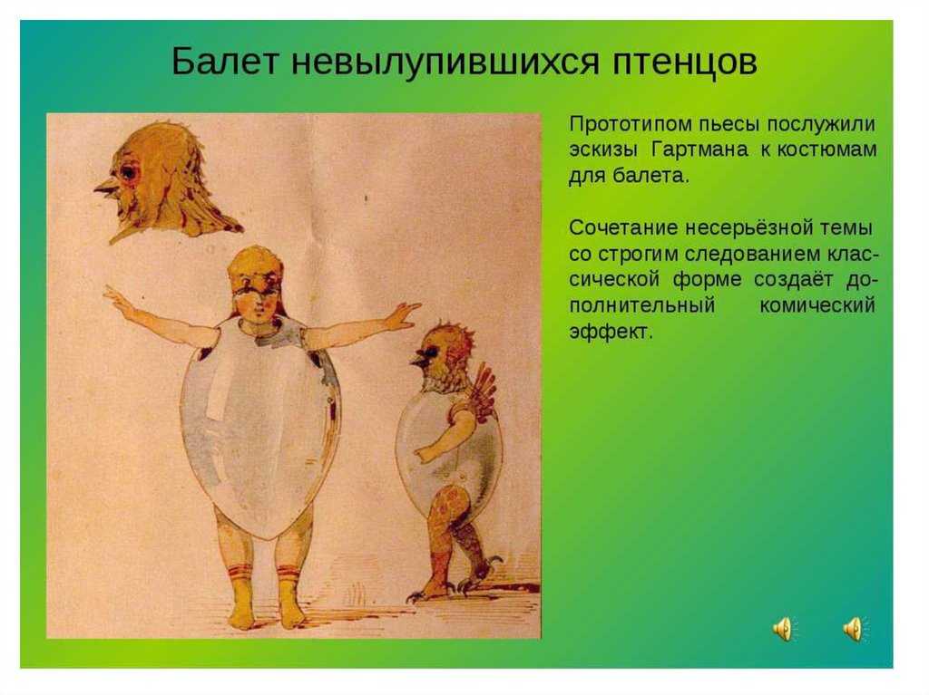 Слушание музыки «Балет не вылупившихся птенцов» М. П. Мусоргского.