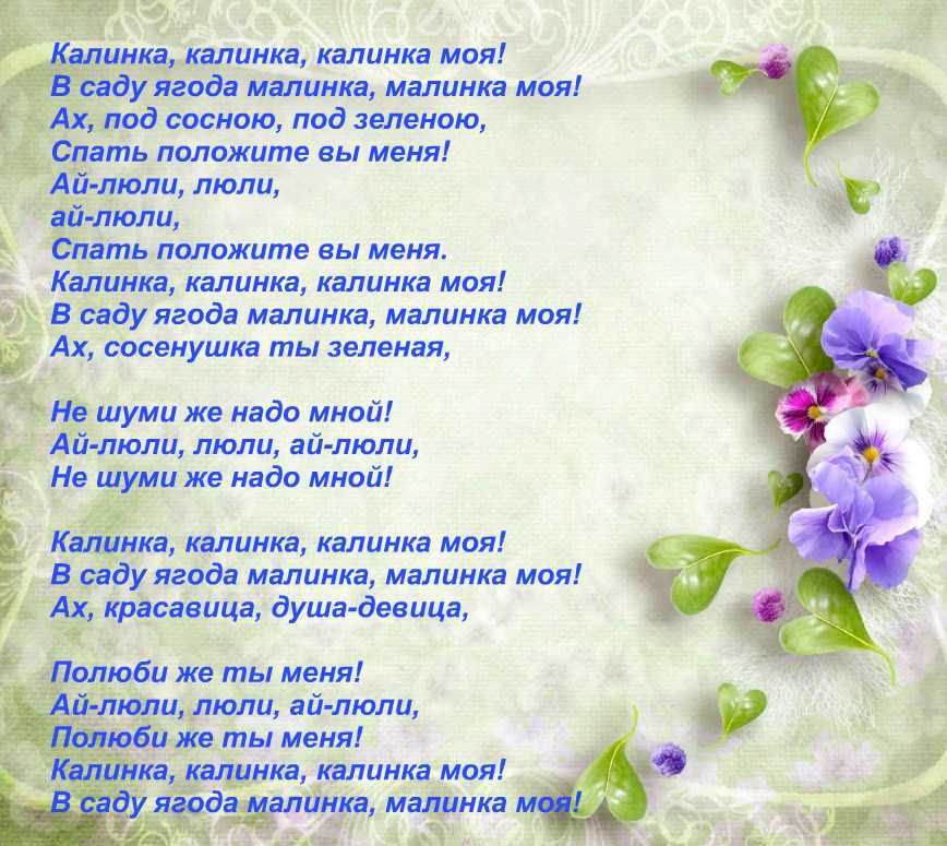 До сих пор эту песню поют все: дети, взрослые. Ни одно застолье не обходится без «Калинки-малинки».