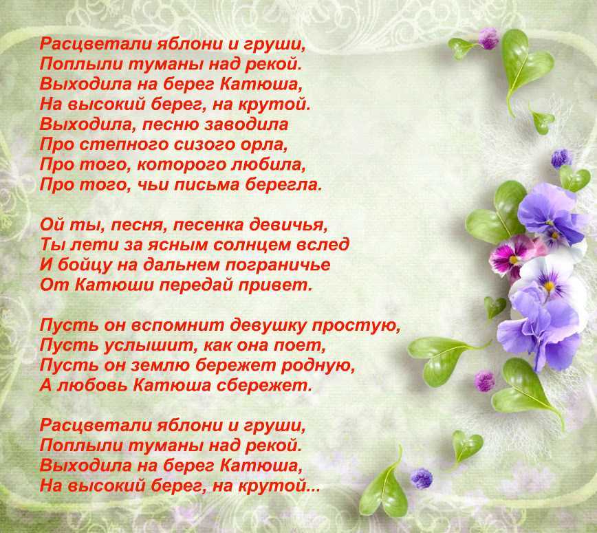 У этой прекрасной застольной песни – богатая история. «Катюша» — считается самой известной военной песней. Но о ее происхождении известно еще до военного времени.