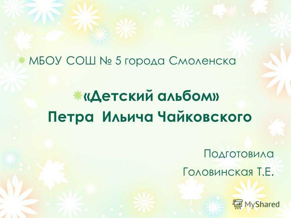 Презентация на тему: » МБОУ СОШ 5 города Смоленска «Детский альбом» Петра Ильича Чайковского Подготовила Головинская Т.Е.» — Транскрипт: