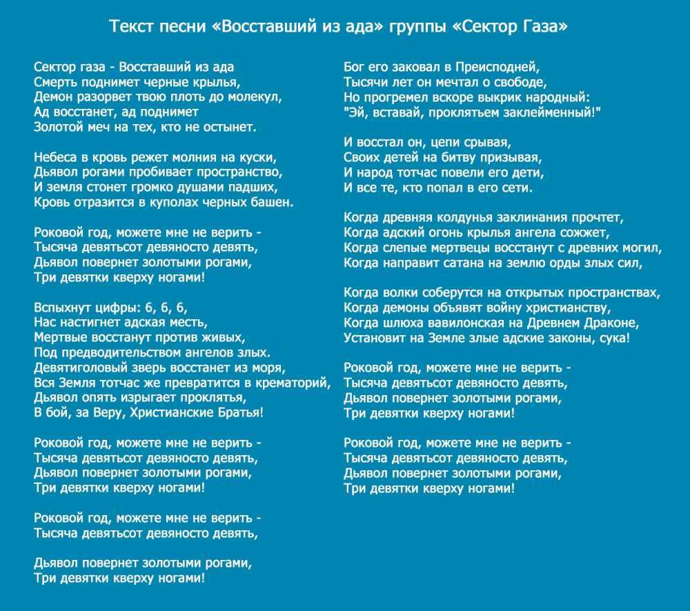 На самом деле, на текст песни «Восставший из ада» Юрия Клинских вдохновили библейские представления о конце света. Тогда мир всколыхнула очередная религиозная паника о приближающемся апокалипсисе в канун нового тысячелетия.