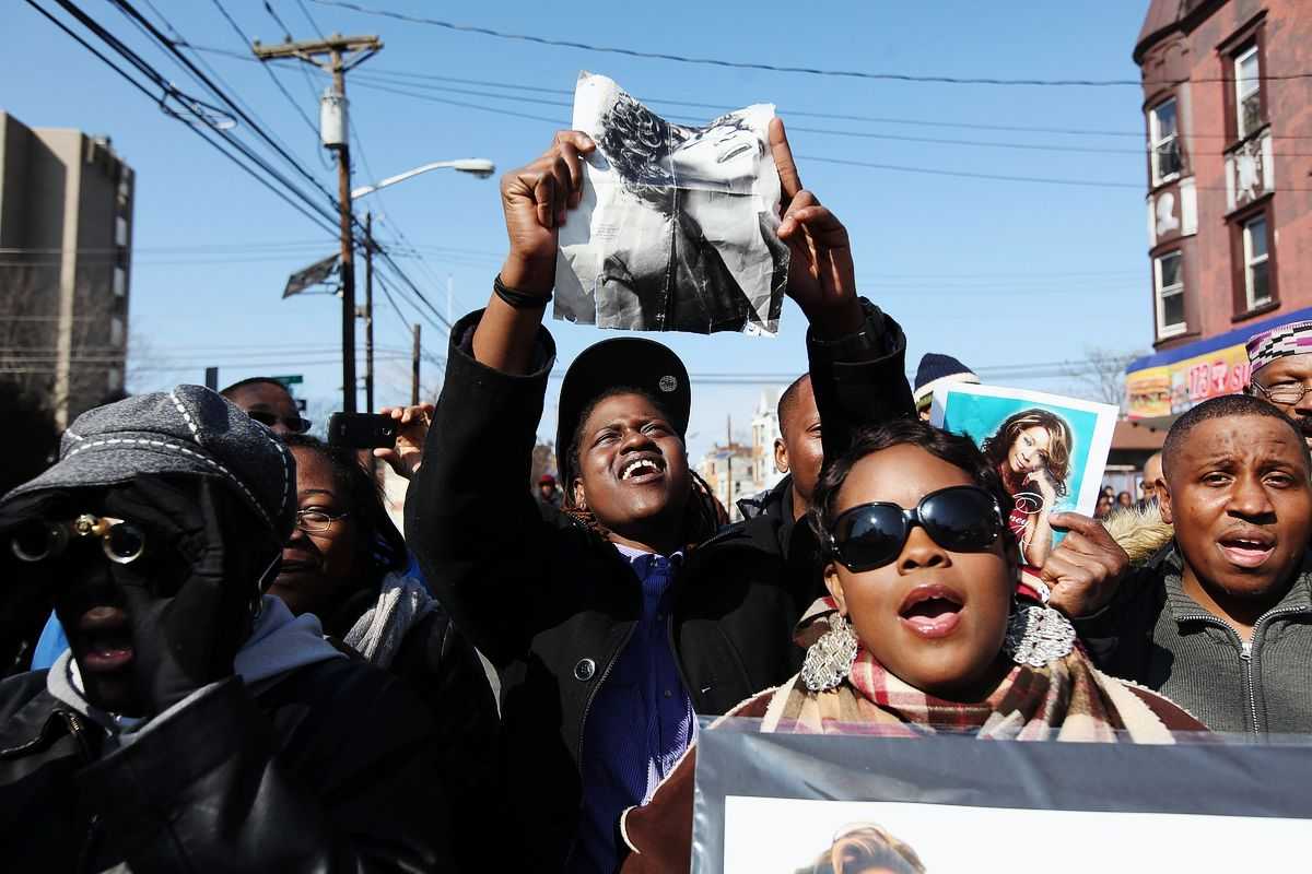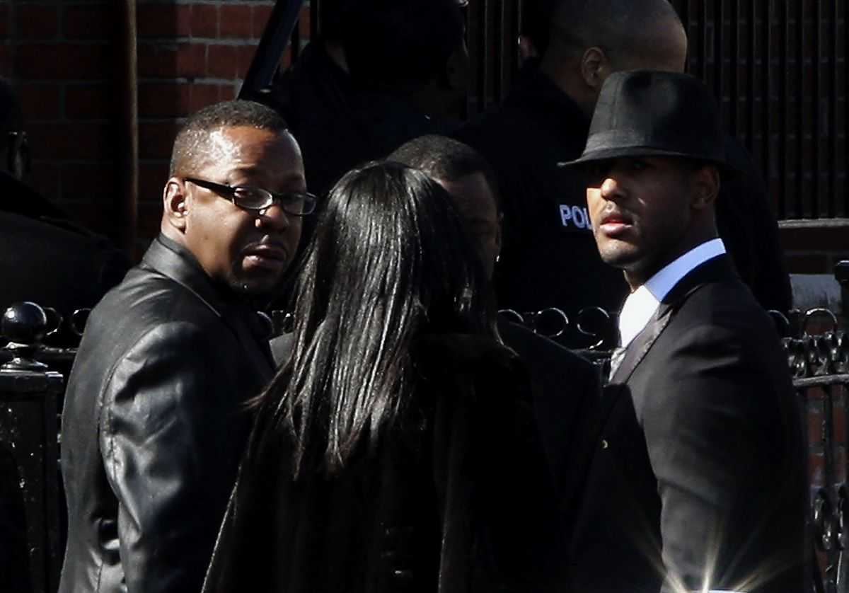 Бобби Браун перед церемонией похорон Уитни Хьюстон в баптистской церкви Нью-Хоуп в Нью-Джерси, 18 февраля 2012 г. Поклонники собираются на улице, чтобы выразить поддержку во время панихиды по Уитни Хьюстон в Нью-Джерси, 18 февраля 2012 г.