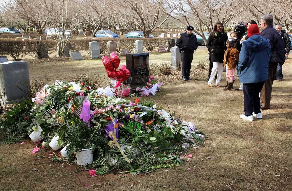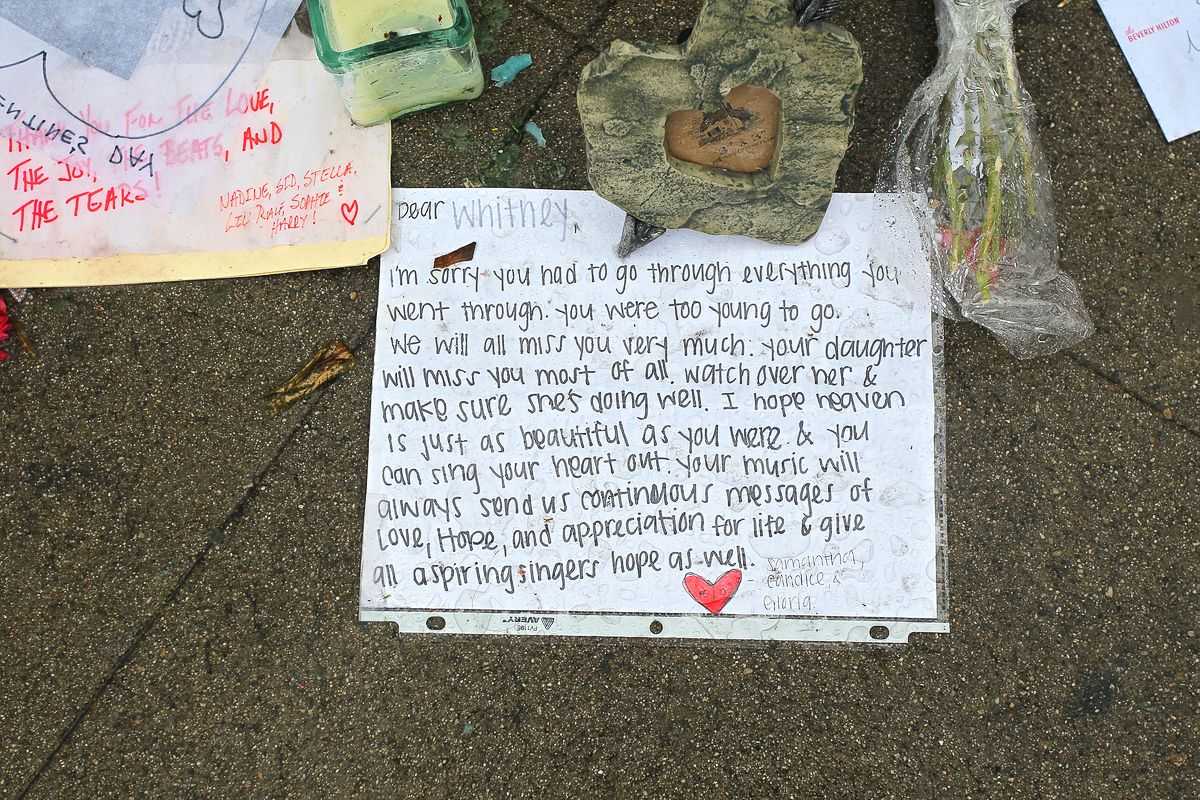 Место захоронения певицы Уитни Хьюстон на кладбище Фэйрвью была похоронена рядом с ее отцом Джоном в Нью-Джерси, 20 февраля 2012 г. Вывеска на концертном зале «Рокси» гласит: «Мы всегда будем любить тебя, Уитни» через несколько дней после смерти Уитни Хьюстон в Лос-Анджелесе, 15 февраля 2012 г.