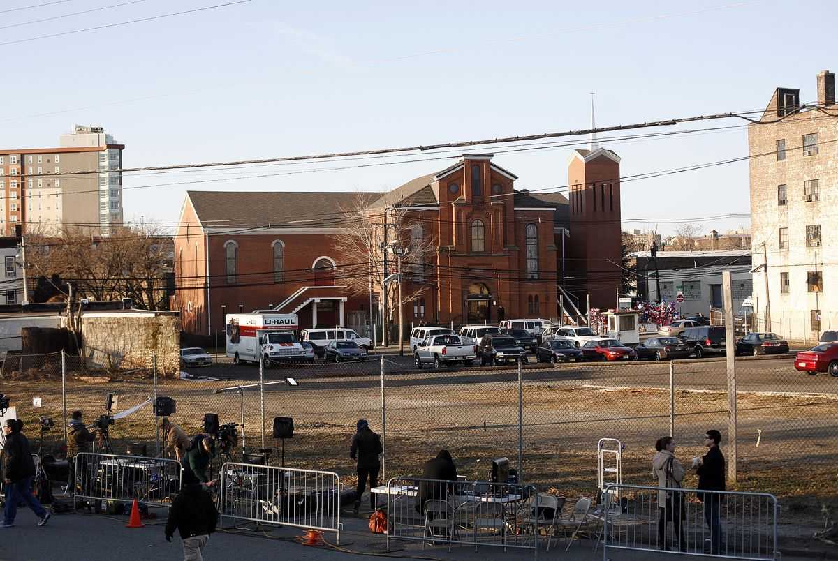Общий вид баптистской церкви Нью-Хоуп перед похоронами Уитни Хьюстон в Нью-Джерси, 18 февраля 2012 г. Баптистская церковь Нью-Хоуп в которой проходят похороны Уитни Хьюстон в Нью-Джерси, 18 февраля 2012 г.