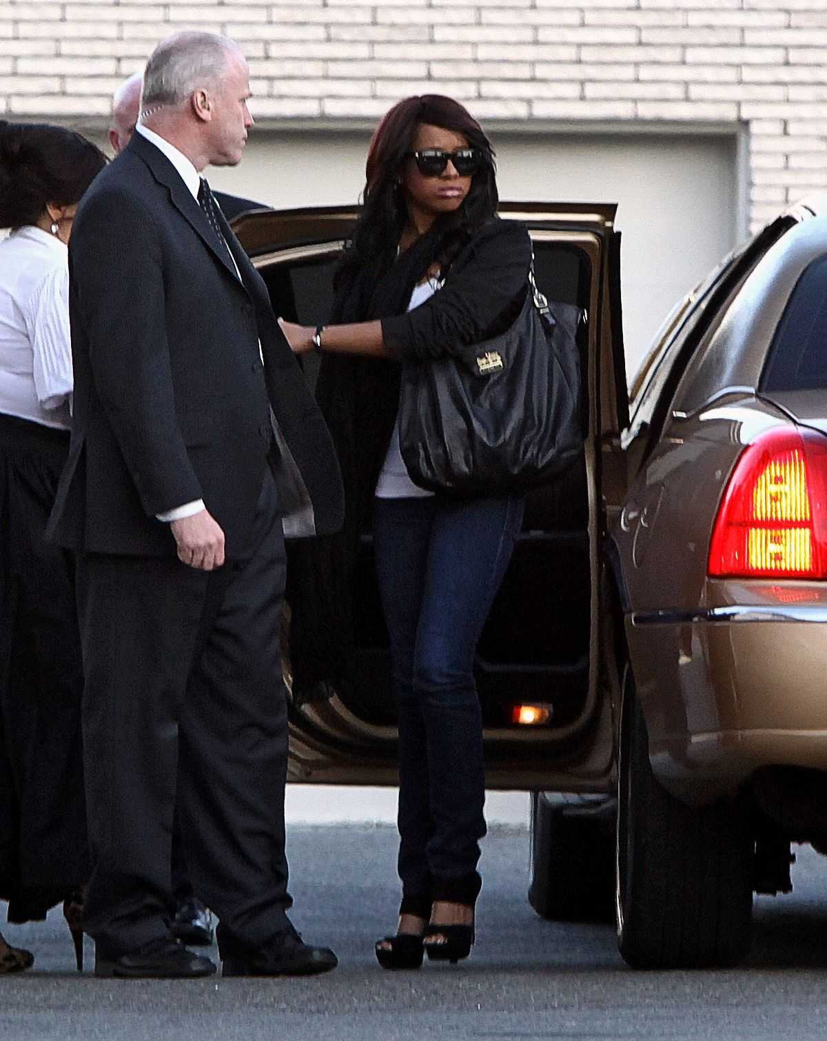 Сисси Хьюстон, мать Уитни Хьюстон, прибывает в похоронное бюро Whigham в Нью-Джерси, 13 февраля 2012 г. Бобби Кристин Хьюстон Браун прибывает в похоронное бюро Whigham в Нью-Джерси, 13 февраля 2012 г.